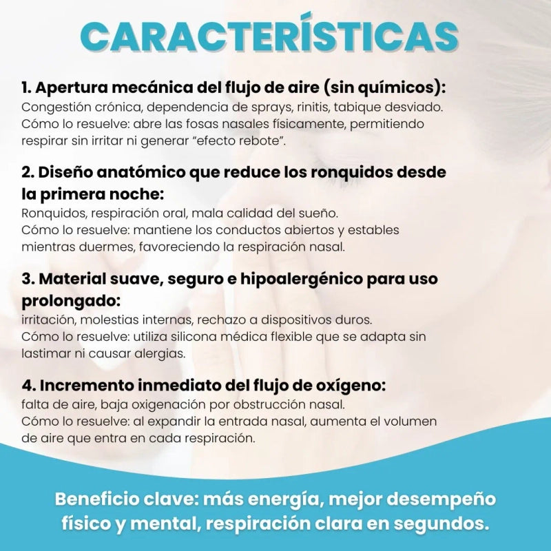 Abre suavemente las fosas nasales para que respires más fácil desde el primer segundo.